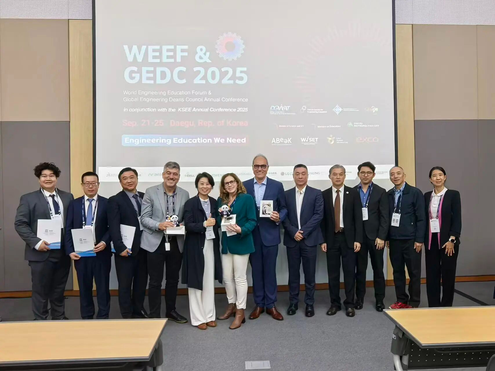 2025年9月24日,韓國大邱——由國際工程教育協會聯盟(IFEES)與全球工學院院長委員會(GEDC)聯合主辦的「2025國際工程教育年會論壇」圓滿落幕。澳門大學工商管理博士(DBA)學位課程第六屆的三位學員趙雙喜、唐閣璟、劉斌立作為中國工程教育標竿企業代表受邀參會,並圍繞「工程教育創新與產業實踐深度融合」主題發表演講,展現了中國企業在工程教育領域的實踐智慧與全球貢獻。